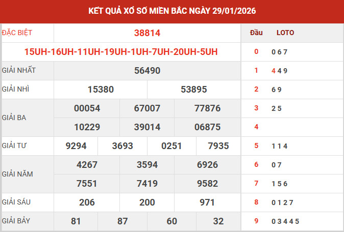 Căn cứ vào bảng kết quả xổ số miền Bắc ngày 29/1/2026 vừa được công bố, các chuyên gia tiến hành tổng hợp và phân tích các số liệu trọng tâm, qua đó mang đến những nhận định chi tiết nhằm hỗ trợ bạn đọc tham khảo và dự đoán XSMB 30/1/2026 một cách hiệu quả.