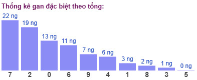 Thống kê cho thấy tổng đề lâu chưa xuất hiện nhất là tổng 7 (bao gồm 10 cặp số: 07, 16, 25, 34, 43, 52, 61, 70, 89, 98) đã 22 ngày chưa ra.