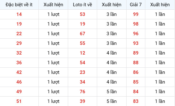 Nhóm Giải 7 xuất hiện ít (1 lần):