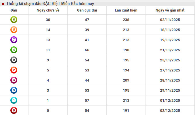 Thống kê chạm đầu đặc biệt XSMB 4/12/2025 hôm nay