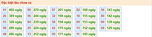 • Cặp số 41 đến nay vẫn chưa ra là 402 ngày