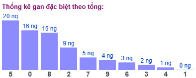 Thống kê cho thấy tổng đề lâu chưa xuất hiện nhất là tổng 5 (bao gồm 10 cặp số: 05, 14, 23, 32, 41, 50, 69, 78, 87, 96) đã 20 ngày chưa ra.