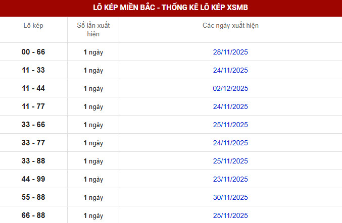 Thống kê đài xổ số miền Bắc thứ 5 lô tô kép biên độ mười ngày