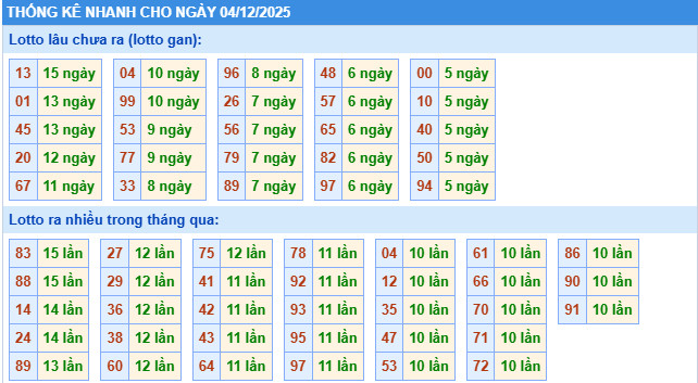 Thống kê miền Bắc nhanh ngày 4/12/2025