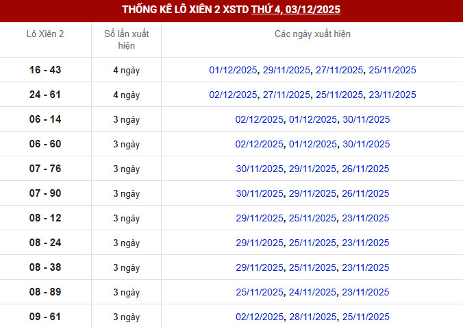 3. Thống kê đài MB đẹp ngày 4/12/2025 thứ 5 tối nay