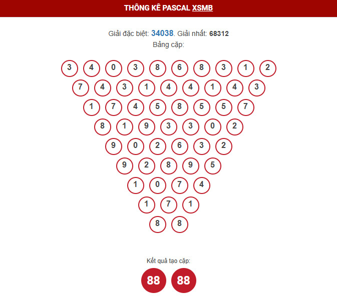 - Dựa vào thống kê Pascal, tham khảo cặp số đặc biệt dễ ra : 88