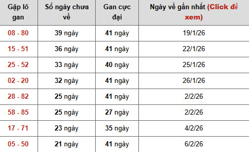 • 08 – 80: đã 39 ngày chưa xuất hiện, trong khi gan cực đại là 41 ngày → đang áp sát vùng đỉnh lịch sử, áp lực giải tỏa rất lớn.