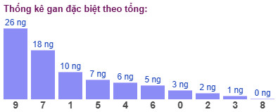 Thống kê cho thấy tổng đề lâu chưa xuất hiện nhất là tổng 9 (bao gồm 10 cặp số: 09, 18, 27, 36, 45, 54, 63, 72, 81, 90) đã 26 ngày chưa ra.