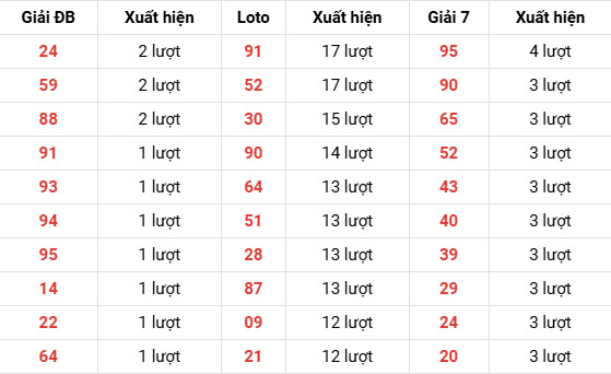91, 52 (17 lượt) → đồng dẫn đầu, chu kỳ lặp rất mạnh.