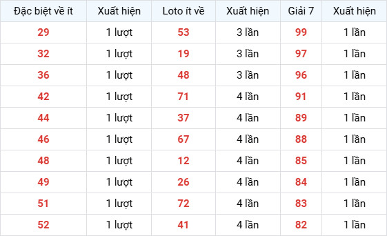 53, 19, 48 (3 lần) → nhóm ít xuất hiện nhất.