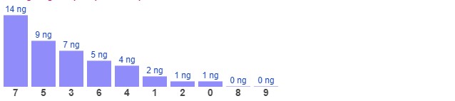 Thống kê cho thấy chạm đề lâu chưa xuất hiện nhất là chạm 7 (bao gồm 19 cặp số có chứa số 7), đã 14 ngày chưa ra.