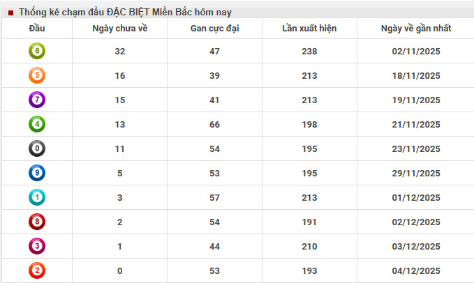 Thống kê miền Bắc nhanh ngày 6/12/2025
