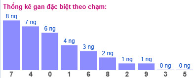 Thống kê cho thấy chạm đề lâu chưa xuất hiện nhất là chạm 7 (bao gồm 19 cặp số có chứa số 7), đã 8 ngày chưa ra.