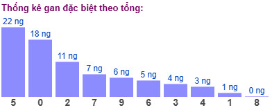 Thống kê cho thấy tổng đề lâu chưa xuất hiện nhất là tổng 5 (bao gồm 10 cặp số: 05, 14, 23, 32, 41, 50, 69, 78, 87, 96) đã 22 ngày chưa ra.