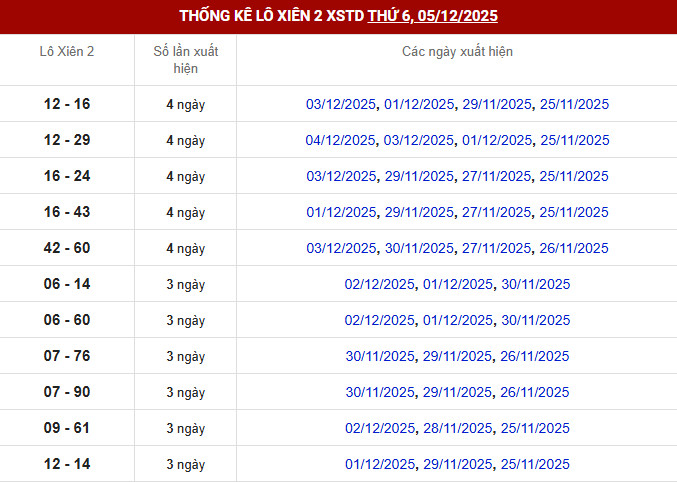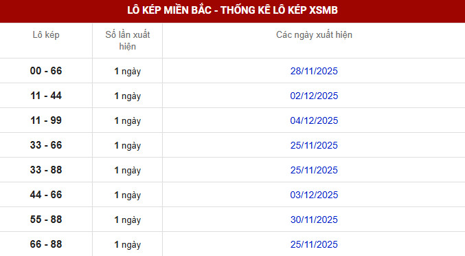 ⇒ Xem thêm: Bảng thống kê tần suất lô miền Bắc chi tiết.