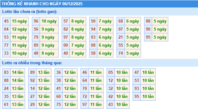 Tham khảo dự đoán xổ số miền bắc 6/12/2025, bạn sẽ nhận được các thông tin chi tiết về giải đặc biệt, giải tám, đầu đuôi, bao lô 2 số cũng như các thống kê khác đáng chú ý.