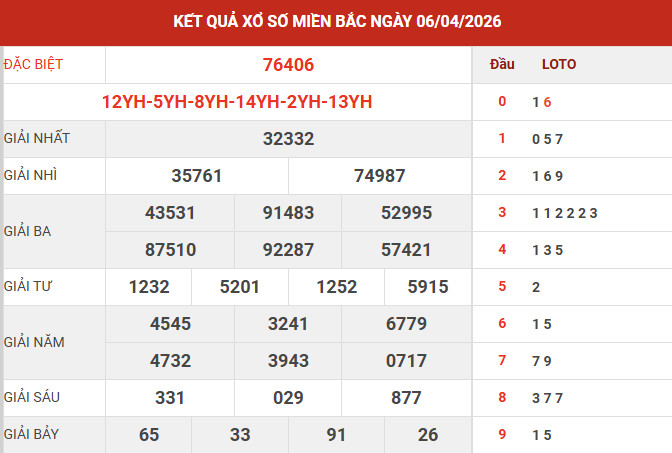 Kết quả xổ số miền Bắc ngày 7/4/2026 là cơ sở quan trọng để các chuyên gia tiến hành phân tích dữ liệu và nhận định xu hướng. Thông qua đó, người chơi có thể tham khảo các thông tin hữu ích nhằm đưa ra dự đoán XSMB 7/4/2026 phù hợp với thực tế.