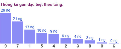 Thống kê cho thấy tổng đề lâu chưa xuất hiện nhất là tổng 9 (bao gồm 10 cặp số: 09, 18, 27, 36, 45, 54, 63, 72, 81, 90) đã 29 ngày chưa ra.