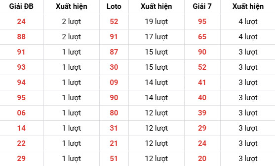 24, 88 (2 lượt) → tiếp tục là nhóm nổi bật, duy trì tần suất cao.