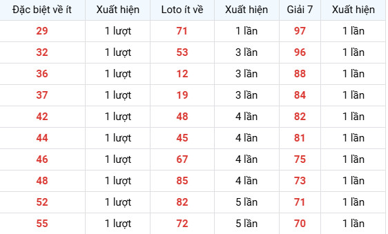 Nhóm Giải 7 xuất hiện ít (1 lần):