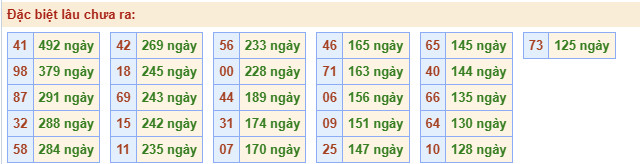 Nhóm số 08, 41, 45, 73 đều có 14 lần xuất hiện, tạo thành nhóm loto ổn định.