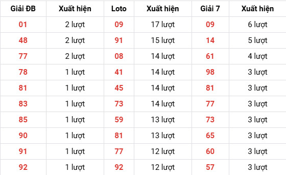 ⇒ Xem thêm: Bảng thống kê tần suất lô miền Bắc chi tiết.