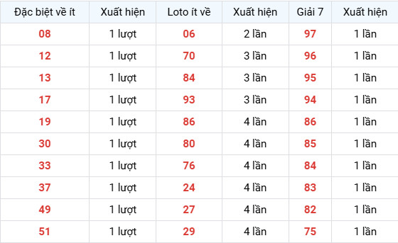 Giải 7 ít xuất hiện: 97, 96, 95, 94, 86, 85, 84, 83, 82, 75.