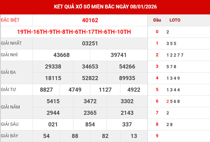 Tham khảo dự đoán xổ số miền bắc 9/1/2026 chuẩn xác, bạn sẽ nhận được các thông tin chi tiết về giải đặc biệt, giải tám, đầu đuôi, bao lô 2 số cũng như các thống kê khác đáng chú ý.