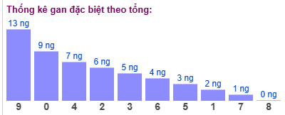 Thống kê cho thấy tổng đề lâu chưa xuất hiện nhất là tổng 9 (bao gồm 10 cặp số: 09, 18, 27, 36, 45, 54, 63, 72, 81, 90) đã 13 ngày chưa ra.
