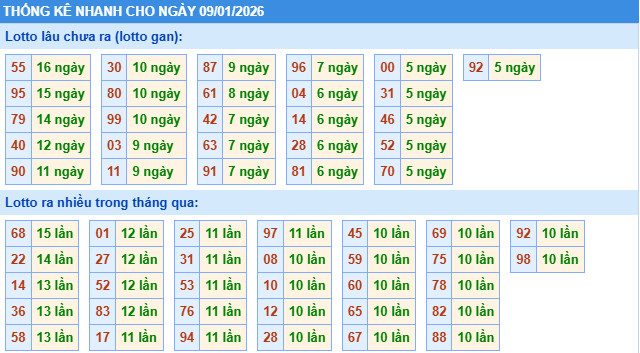 ​Thống kê lô tô miền Bắc nhanh ngày 9/1/2026