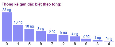 Thống kê cho thấy tổng đề lâu chưa xuất hiện nhất là tổng 0 (bao gồm 10 cặp số: 00, 19, 28, 37, 46, 55, 64, 73, 82, 91) đã 23 ngày chưa ra.