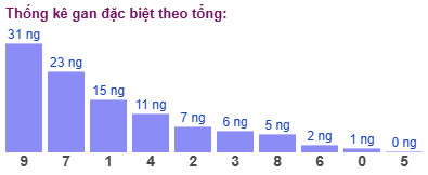 Thống kê cho thấy tổng đề lâu chưa xuất hiện nhất là tổng 9 (bao gồm 10 cặp số: 09, 18, 27, 36, 45, 54, 63, 72, 81, 90) đã 31 ngày chưa ra.