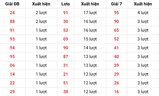 24, 88 (2 lượt) → tiếp tục duy trì tần suất cao, nổi bật nhất.