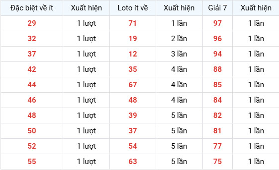 Nhóm Giải 7 xuất hiện ít (1 lần):