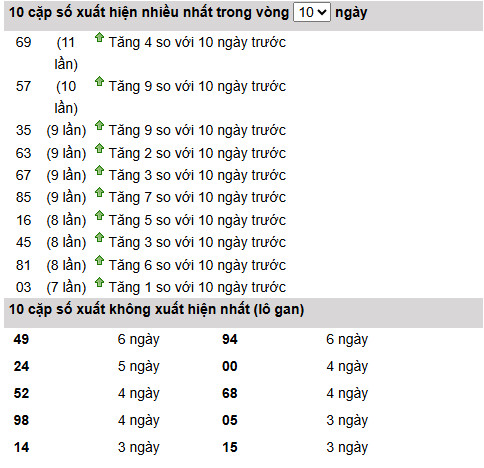 Ở chiều ngược lại, 10 và 98 đang là hai cặp gan cao nhất khi 7 ngày chưa xuất hiện, thuộc nhóm gan đáng theo dõi để cân nhắc ghép kèm dàn chạy nóng. Tiếp theo là 40 – 87 (5 ngày), phản ánh trạng thái gan trung bình. Nhóm 24 – 32 – 41 – 69 – 75 – 91 cùng ở mốc 4 ngày, cho thấy khả năng bật lại trong ngắn hạn nếu kết hợp hợp lý cùng các cặp đang có nhịp tốt, có thể tham khảo thêm trong dự đoán XSMN hôm nay.