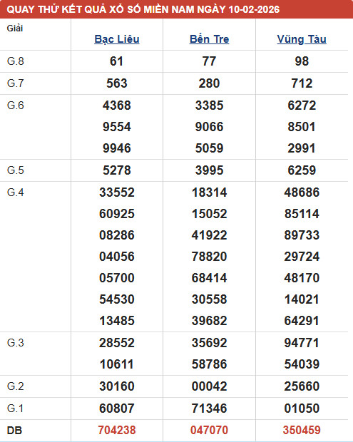 Phân tích XSMN - đài XSVT thứ 3 ngày 10/2/2026 với các mục chốt số đầu, đuôi giải đặc biệt, kết quả giải 8, lô xiên của đài xổ số Vũng Tàu với xác suất trúng cao
