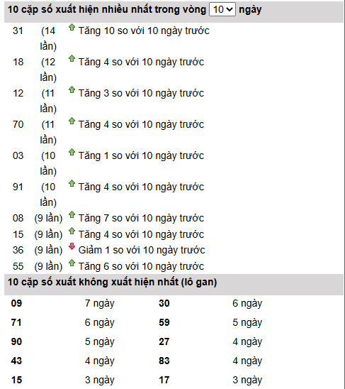 31 (14 lần, +10) → số “nóng” nhất, tăng rất mạnh.