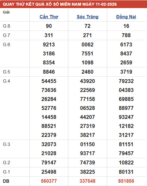 - Thống kê XSMN ngày 11/2/2026 hôm nay chuẩn xác