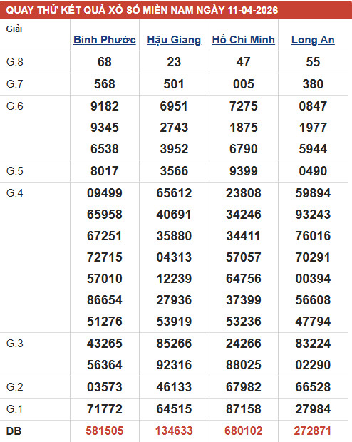Hôm nay, chuyên trang sxmb.vn sẽ đưa ra những dự đoán XSMN ngày 11/4/2026 chính xác. Cùng các chuyên gia dự đoán xổ số miền nam các tỉnh XSHCM - XSLA - XSBP - XSHG để tìm ra con số may mắn cho mình nhé!