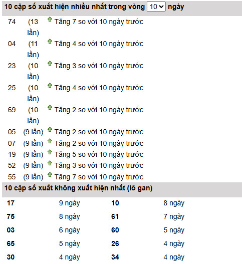 Đuôi lô ra nhiều: 7 (4 lần), 5 (3 lần)