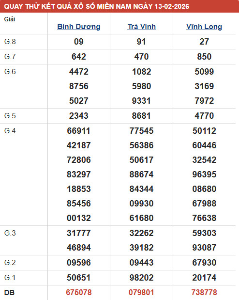 Phân tích XSMN - đài XSBD thứ 6 ngày 13/2/2026 với các mục chốt số đầu, đuôi giải đặc biệt, kết quả giải 8, lô xiên của đài xổ số Bình Dương với xác suất trúng cao