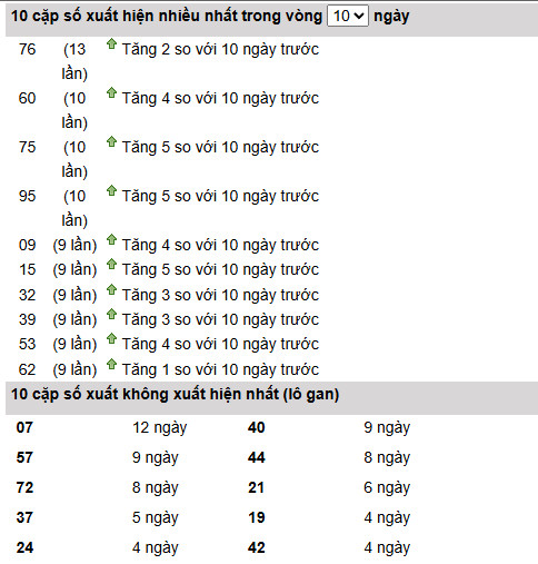 Từ bảng thống kê 10 ngày gần nhất có thể thấy 76 đang dẫn đầu với 13 lần xuất hiện, tiếp tục duy trì vai trò trụ của nhóm chạy nóng dù mức tăng không quá đột biến. Theo sau là nhóm 60, 75, 95 cùng đạt 10 lần và đều ghi nhận mức tăng khá mạnh so với chu kỳ trước, cho thấy lớp số trung tâm đang mở rộng và tạo nền tốt cho các phương án soi cầu xổ số miền nam ngày 14 tháng 2 năm 2026.