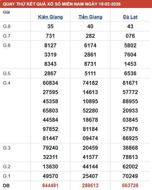 Phân tích XSMN - đài XSKG chủ nhật ngày 15/2/2026 với các mục chốt số đầu, đuôi giải đặc biệt, kết quả giải 8, lô xiên của đài xổ số Kiên Giang với xác suất trúng cao