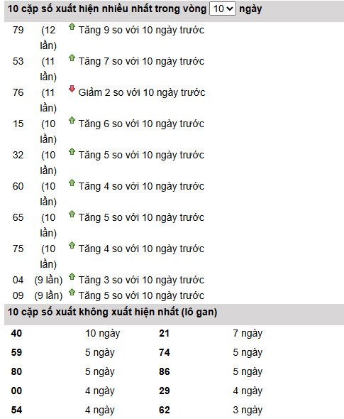 Trong thống kê 10 ngày gần nhất, 79 đang vươn lên dẫn đầu với 12 lần xuất hiện và mức tăng mạnh +9, cho thấy nhịp chạy rất cao và giữ vai trò trụ trong dàn số ngắn hạn, phù hợp làm tâm điểm khi triển khai các phương án soi cầu xổ số miền nam ngày 15 tháng 2 năm 2026.