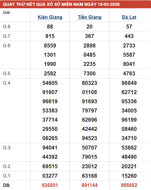 - Thống kê KQXS Kiên Giang chủ nhật ngày 15/3/2026