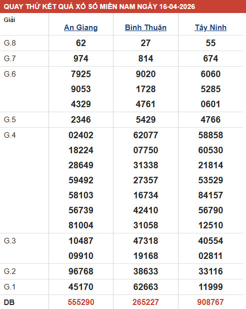 Dự đoán XSMN ngày 16/4/2026 - Thống kê XSMN thứ 5 tối nay - Cùng các chuyên gia phân tích các đài XSAG - XSTN - XSBTH mở thưởng ngày 16/4/2026.