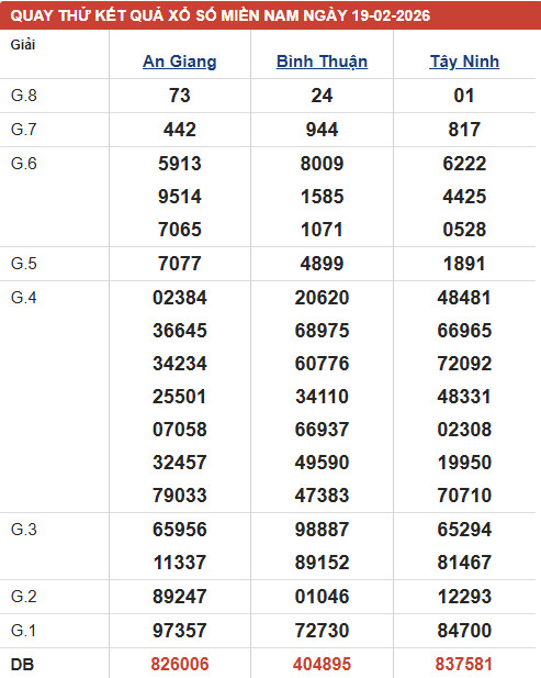 Dự đoán XSMN ngày 19/2/2026 - Thống kê XSMN thứ 5 tối nay - Cùng các chuyên gia phân tích các đài XSAG - XSTN - XSBTH mở thưởng ngày 19/2/2026.