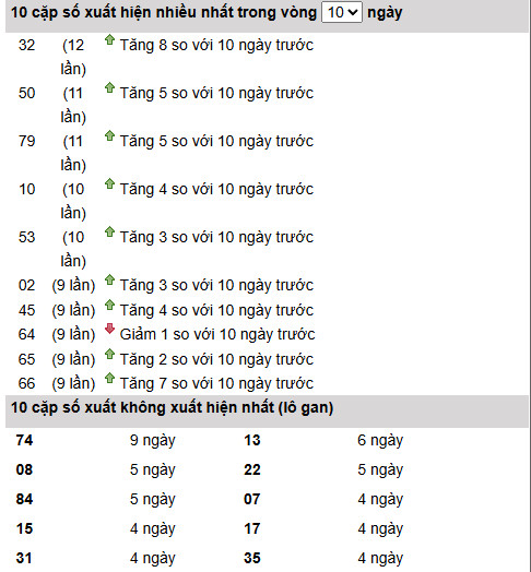 Ở chiều ngược lại, 74 đang là mã gan cao nhất với 9 ngày chưa xuất hiện, thuộc nhóm gan nổi bật cần lưu ý để ghép cùng dàn chính.