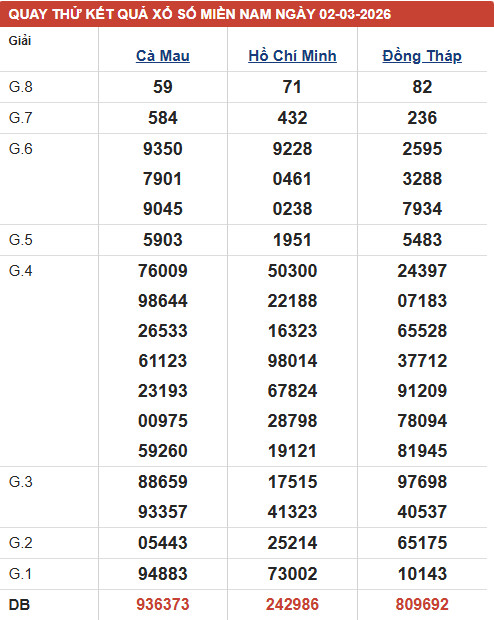 Tham khảo XSMN - đài XSHCM thứ 2 ngày 2/3/2026 với các mục chốt số đầu, đuôi giải đặc biệt, kết quả giải 8, lô xiên của đài xổ số Hồ Chí Minh với xác suất trúng cao
