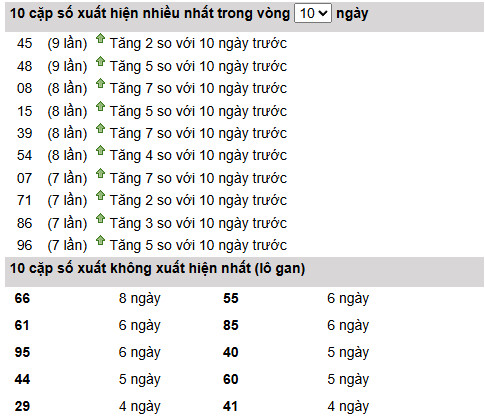 Để giúp bạn "chốt số" XSMN thứ 2 hiệu quả hơn, chúng tôi đã tổng hợp và phân tích dữ liệu, mang đến những thống kê chi tiết về các cặp số xuất hiện trong thời gian gần đây. Tham khảo những thông tin này, bạn sẽ có thêm cơ sở để lựa chọn cặp số đẹp nhất, ưng ý nhất cho mình trong buổi tối hôm nay. Chúc bạn may mắn!
